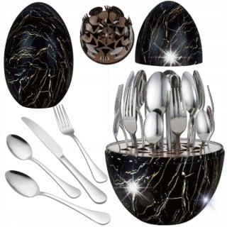 Europ24 oferuje różne zestawy sztućców na każdą kieszeń. Oprócz najczęściej spotykanych sztućców w kolorze srebra, w ofercie znajdują się też złote sztućce oraz unikalne w kolorze czarnym. Wybór jest więc szeroki. Zestawy można dopasować do posiadanych już sztućców lub stworzyć w szufladzie kontrastową kompozycję.
