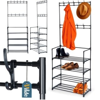 Wieszak na ubrania z regałem na buty metalowy czarny 57x28x156 cm Vilde