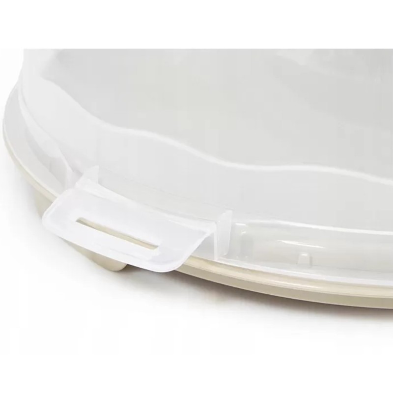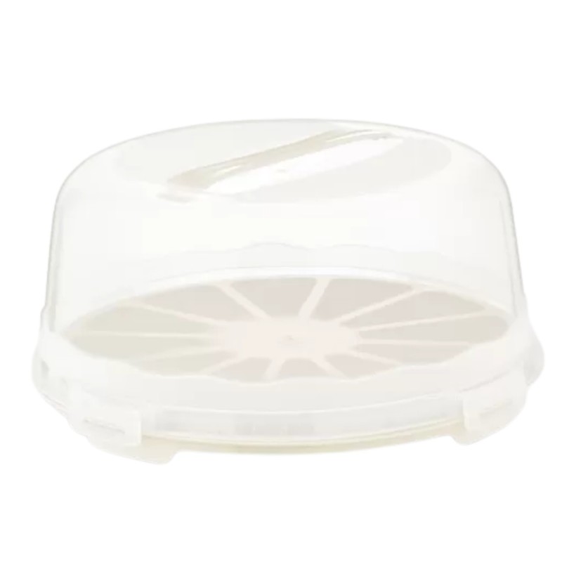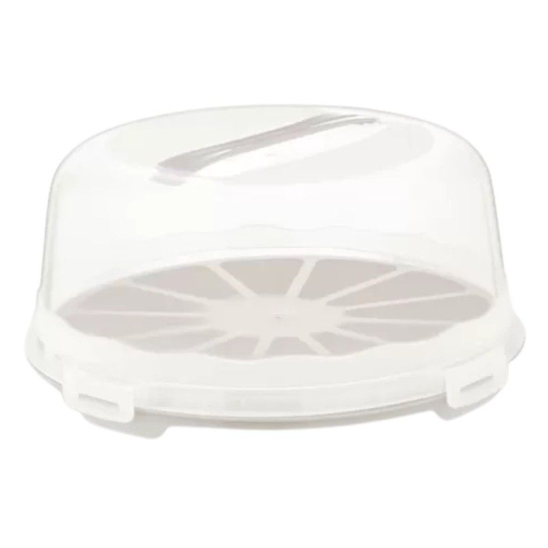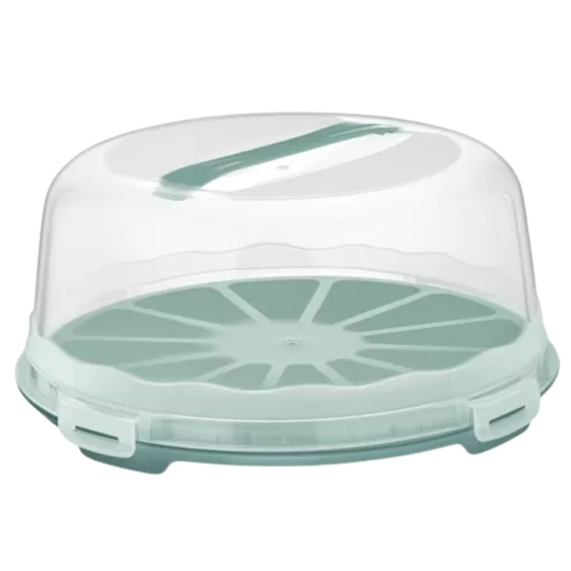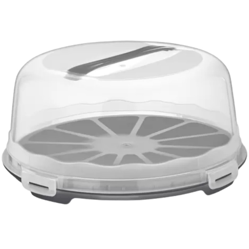 Praktyczny pojemnik do przechowywania i transportowania tortów, ciast oraz innych wypieków. Wyposażony w pokrywę zamykaną na cztery zatrzaski oraz wygodny uchwyt do przenoszenia. Lekka konstrukcja z tworzywa sprawia, że pojemnik jest wygodny w codziennym użytkowaniu i bezpieczny podczas transportu.