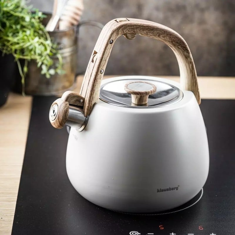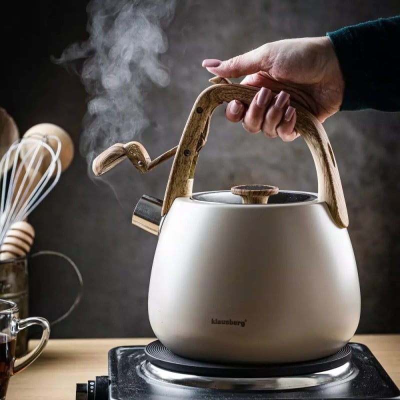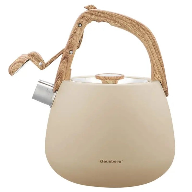 Czajnik z gwizdkiem tradycyjny stalowy 2.5L gaz indukcja beżowy matowy Klausberg