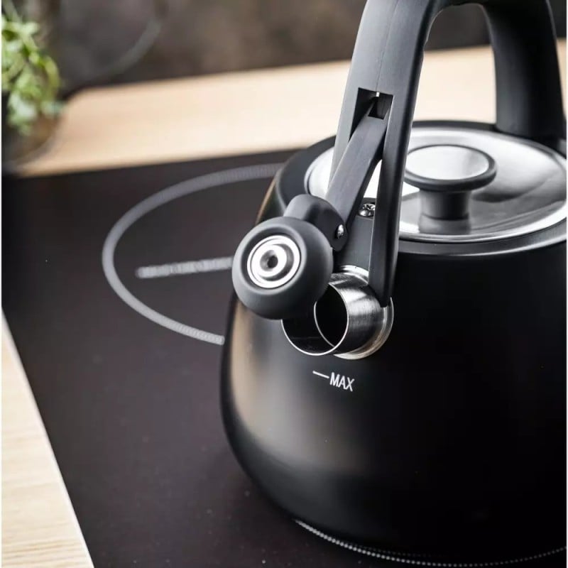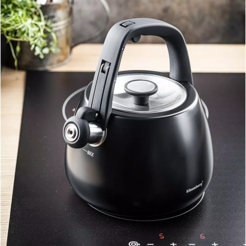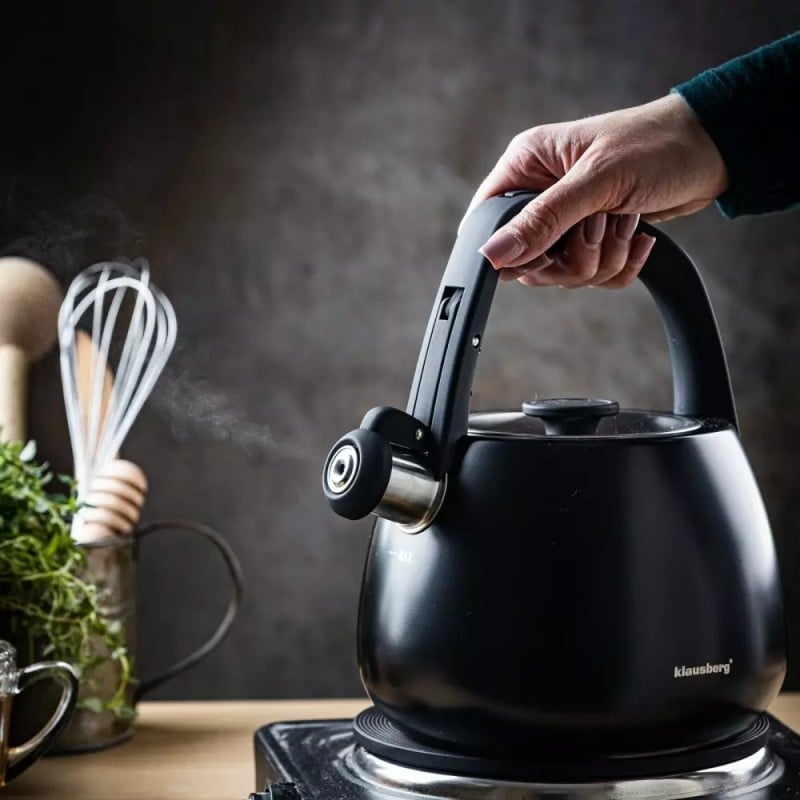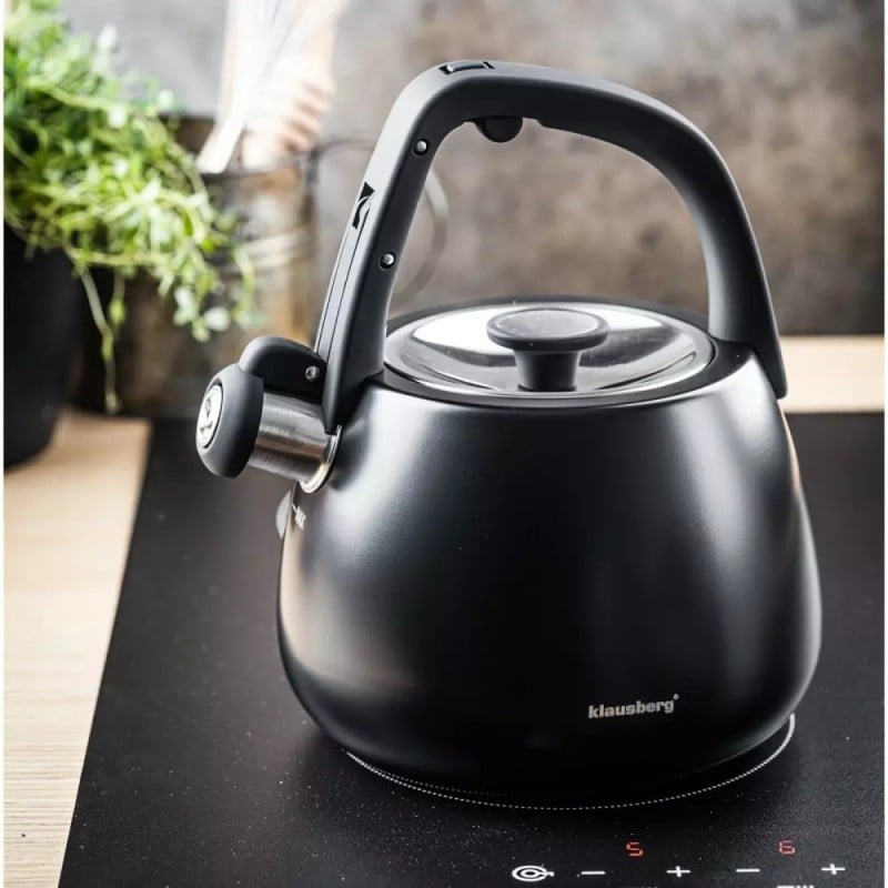 Czajnik z gwizdkiem tradycyjny stalowy 2.5L gaz indukcja czarny matowy Klausberg