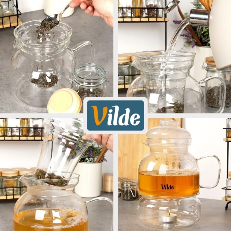 - zestaw do parzenia herbaty - komplet zawiera dzbanek, zaparzacz oraz podgrzewacz umożliwiający wygodne przygotowanie naparu