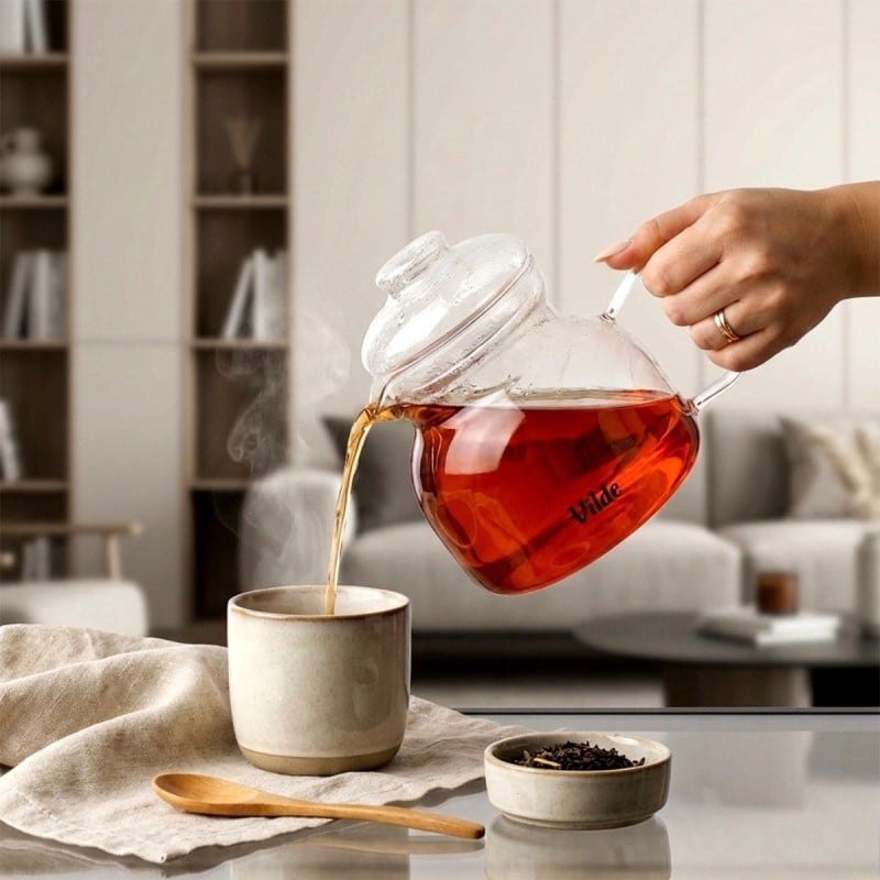 Podgrzewacz na świeczkę pozwala utrzymać temperaturę herbaty przez dłuższy czas. To praktyczne rozwiązanie podczas spotkań przy stole.