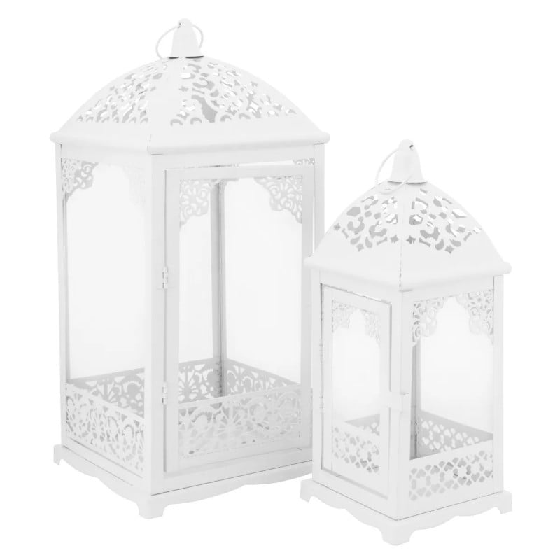 Lampiony latarnie ozdobne ażurowe 31/42 cm Altom Design latarenki metalowe białe zestaw 2 szt.