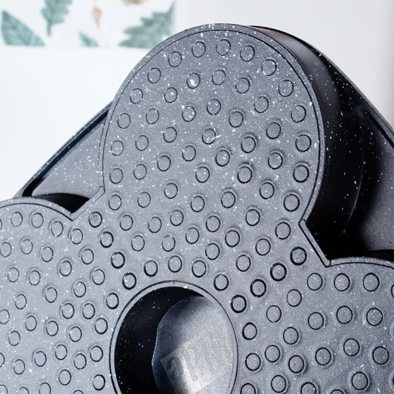 Patelnia z 4 otworami z linii Black Line to praktyczne rozwiązanie do szybkiego przygotowywania jajek sadzonych, placuszków i mini pancakes. Nieprzywierająca powłoka granitowa, kompaktowy rozmiar oraz równomierne rozprowadzanie ciepła sprawiają, że gotowanie staje się wygodniejsze, a potrawy zyskują estetyczny, równy kształt. To funkcjonalna patelnia do codziennego użytku, szczególnie wtedy, gdy liczy się szybkość i porządek na patelni.