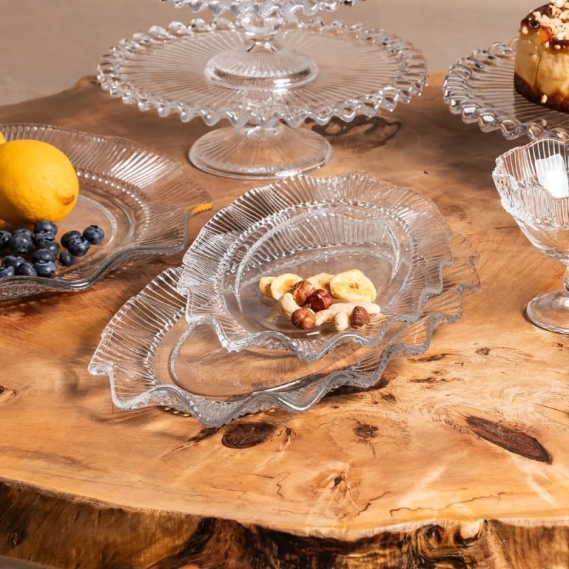 - Szklany talerz jest idealny do serwowania przekąsek, deserów czy przystawek.
