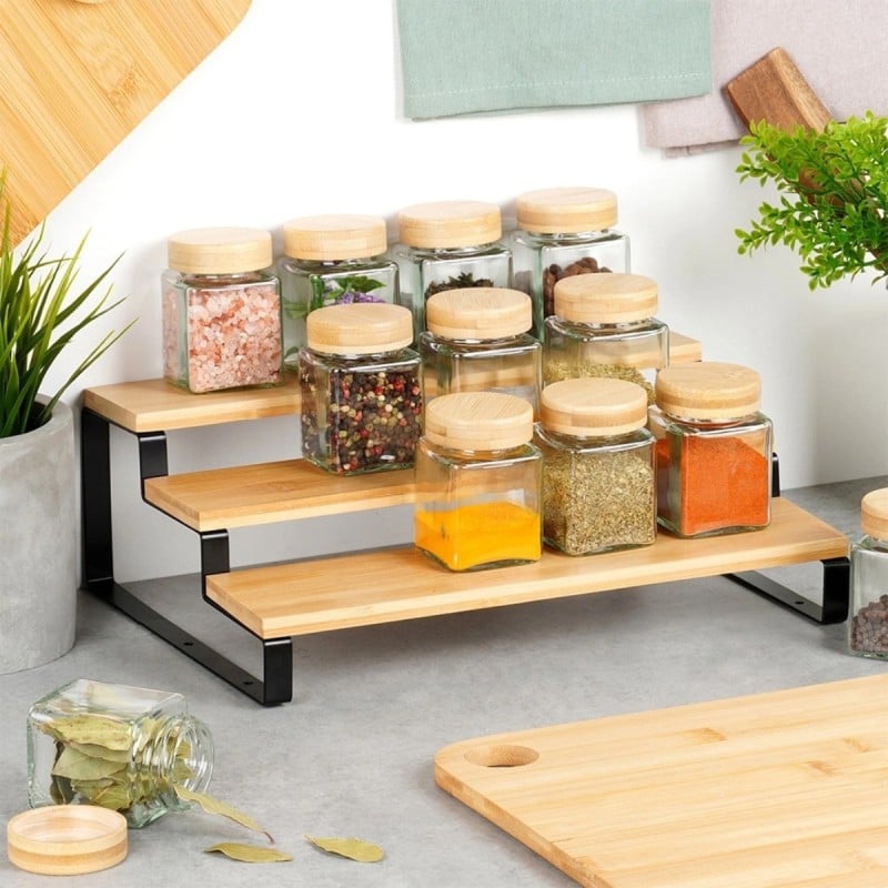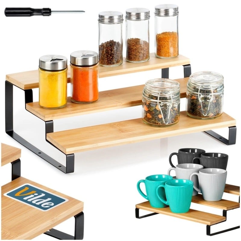 Półka kuchenna bambusowa 3-poziomowa 32x23,5x9,6 cm na przyprawy kubki Orion