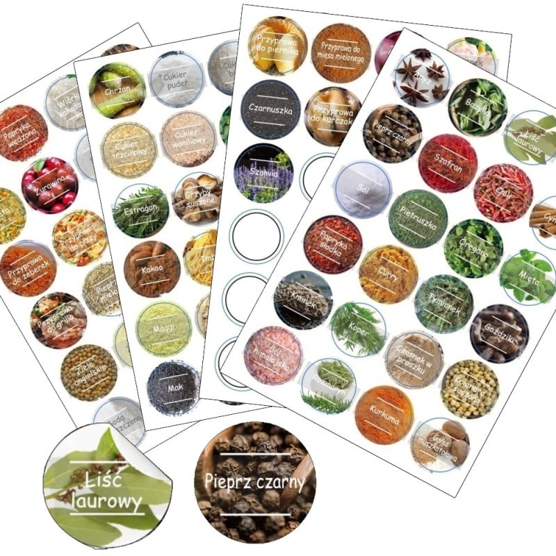 Naklejki na przyprawy etykiety na słoiki GierekHoff 96 sztuk