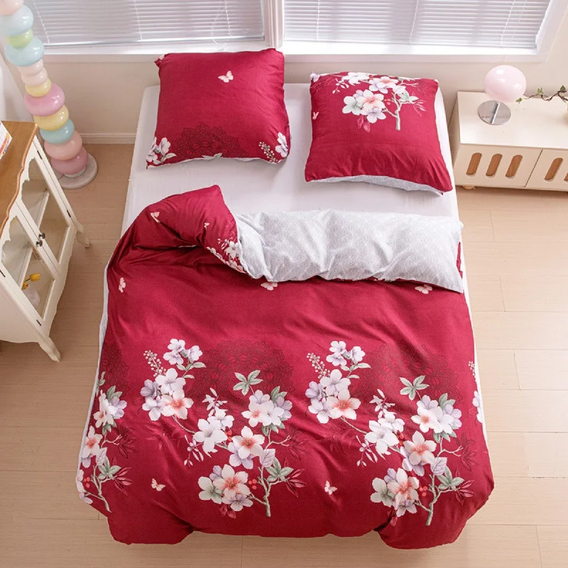 Komplet pościeli dwustronnej GierekHoff 140x200 cm + 1 poszewka 70x80 cm - wzór kwiaty czerwona