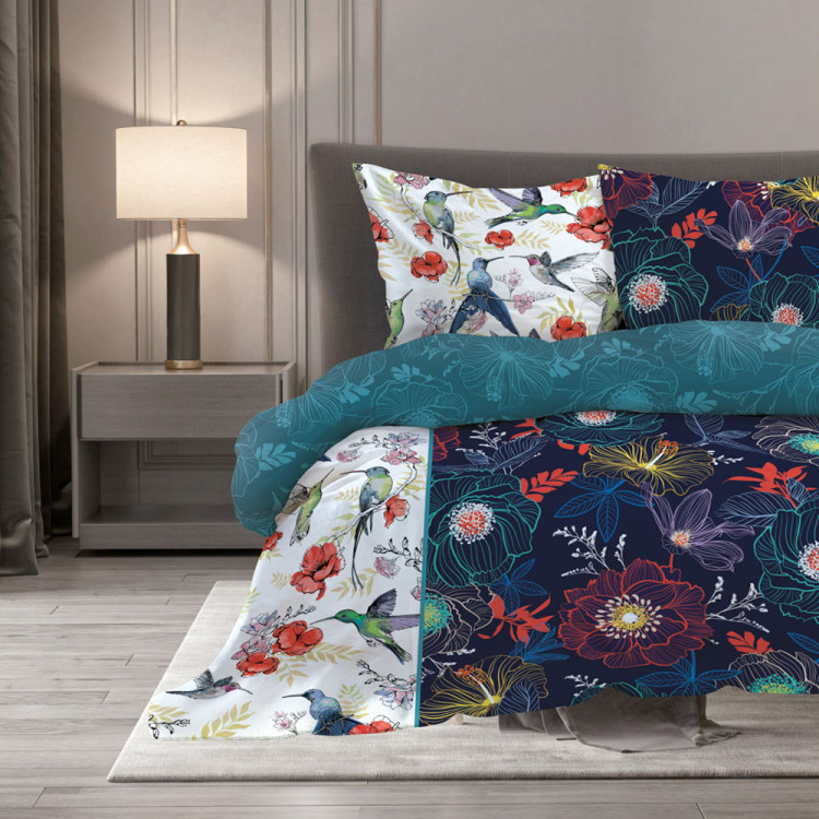 Pościel 160x200 bawełna satynowa dwustronna Faro Elegant 3 części koliber i kwiaty 006