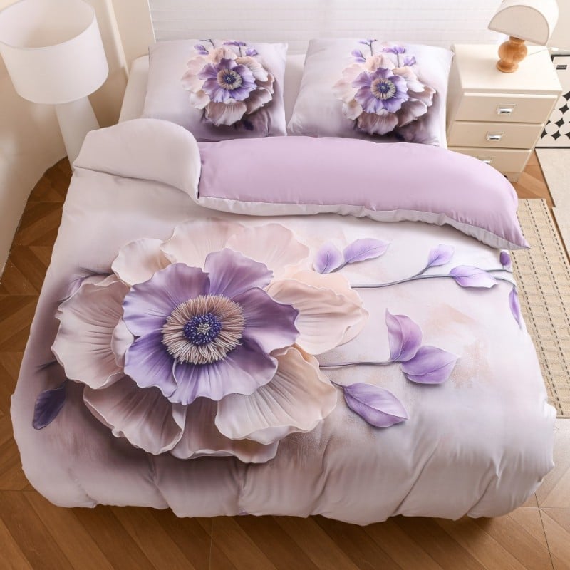 - Efekt 5D: Nowoczesny nadruk nadaje wzorowi głębi i sprawia, że duży kwiat wygląda bardzo efektownie na całej powierzchni pościeli. Kompozycja od razu przyciąga wzrok i nadaje łóżku bardziej dekoracyjny wygląd.