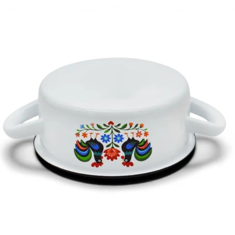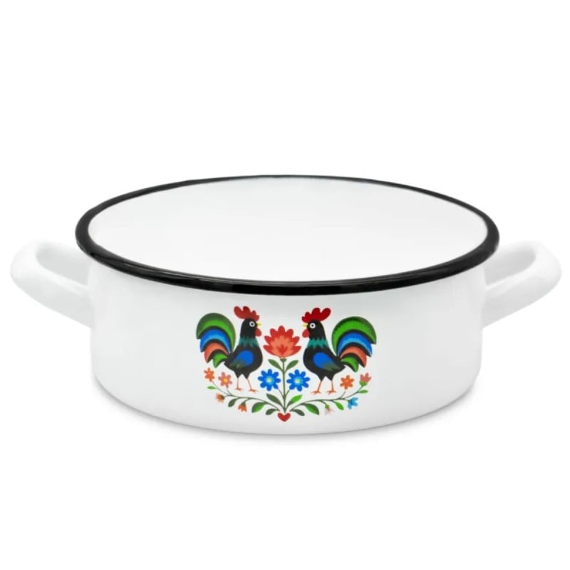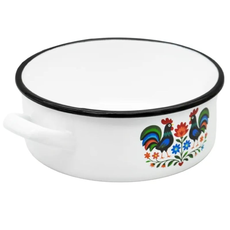 Rondel tradycyjny emaliowany 18 cm z uchwytami stalowy biały Folk 1,8 l Tragar
