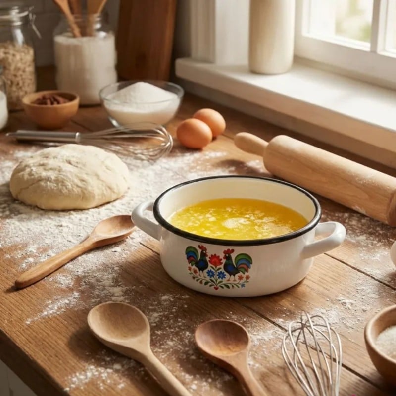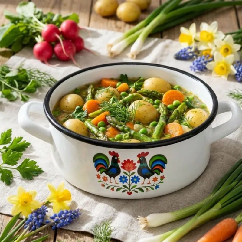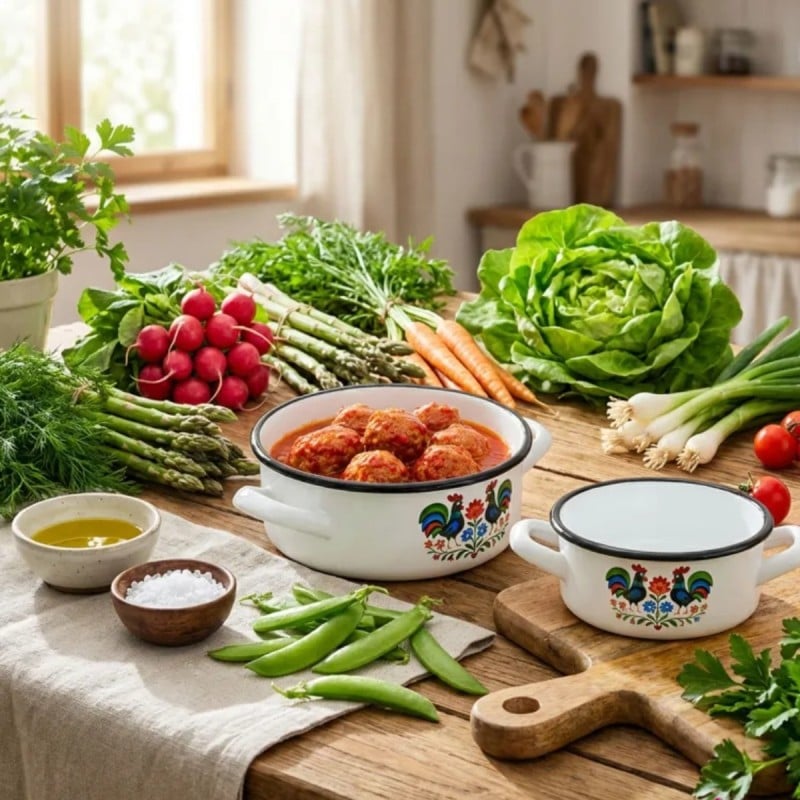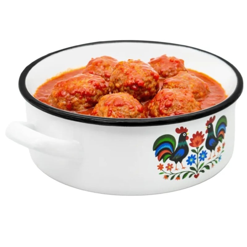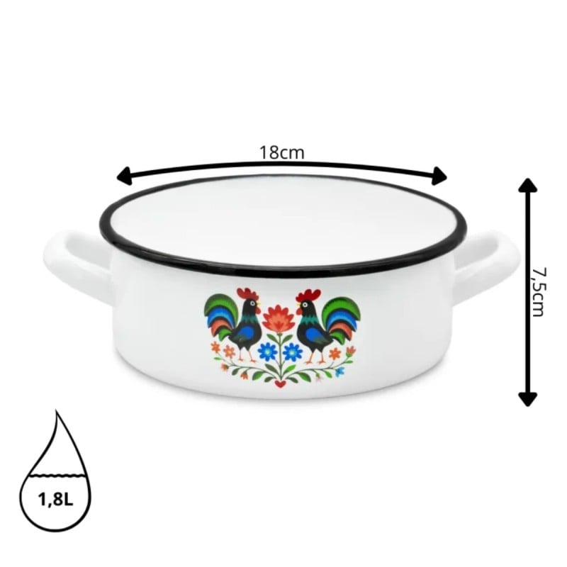 Rondel emaliowany Folk o pojemności 1,8 l to praktyczne naczynie do codziennego gotowania, które łączy trwałe wykonanie z dekoracyjnym wzornictwem inspirowanym tradycją ludową.