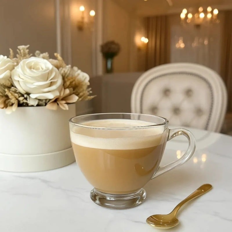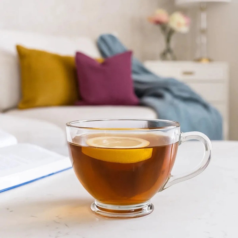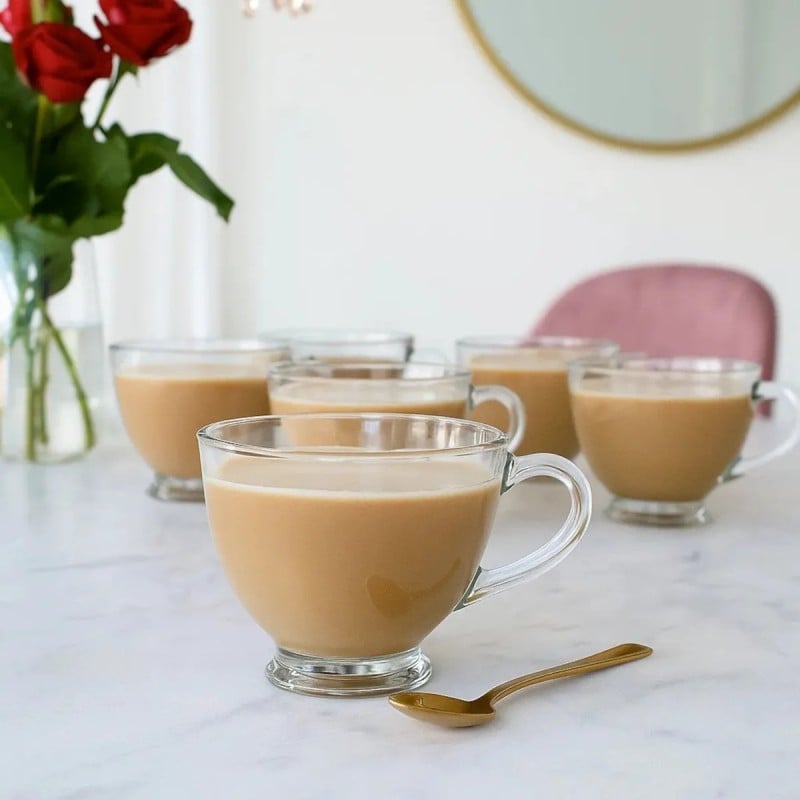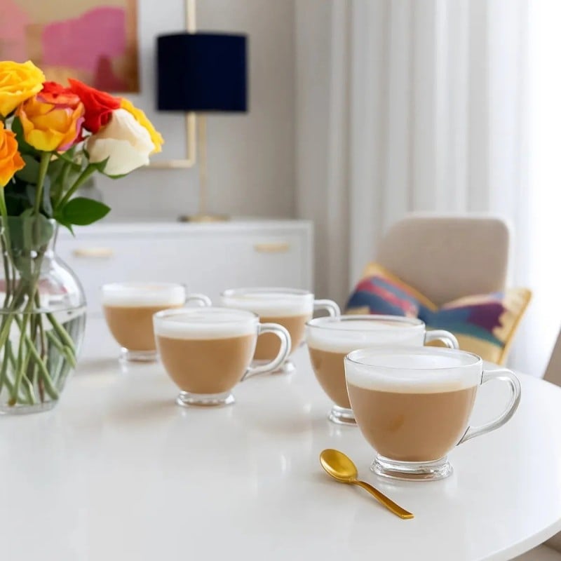Transparentne szkło eksponuje barwę kawy, herbaty lub naparów, dzięki czemu napoje prezentują się estetycznie w każdej sytuacji. Filiżanki dobrze komponują się z codzienną i odświętną zastawą.