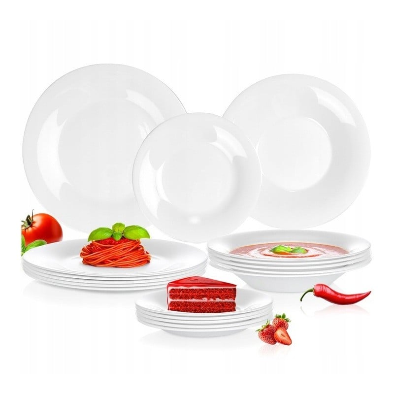 - Kompletny serwis dla 6 osób: Zestaw zawiera wszystko, czego potrzebujesz do zaserwowania pełnego obiadu: 6 talerzy głębokich, 6 talerzy obiadowych płytkich, 6 talerzy deserowych.