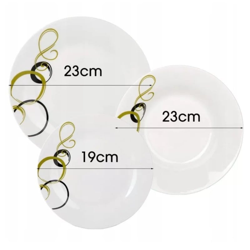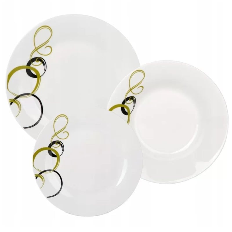 Serwis obiadowy 18 elementów Bella Fiore zestaw talerzy dla 6 osób talerze w zielone kółka