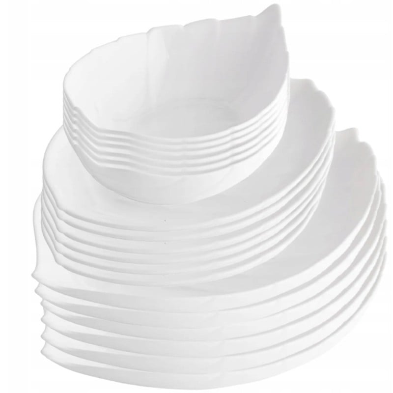 Delikatna forma liścia w połączeniu z czystą bielą szkła opalowego tworzy atmosferę spokoju i wyrafinowania. To serwis, który podkreśla smak potraw, porządkuje przestrzeń stołu i sprawia, że nawet zwykły posiłek staje się przyjemnym rytuałem.