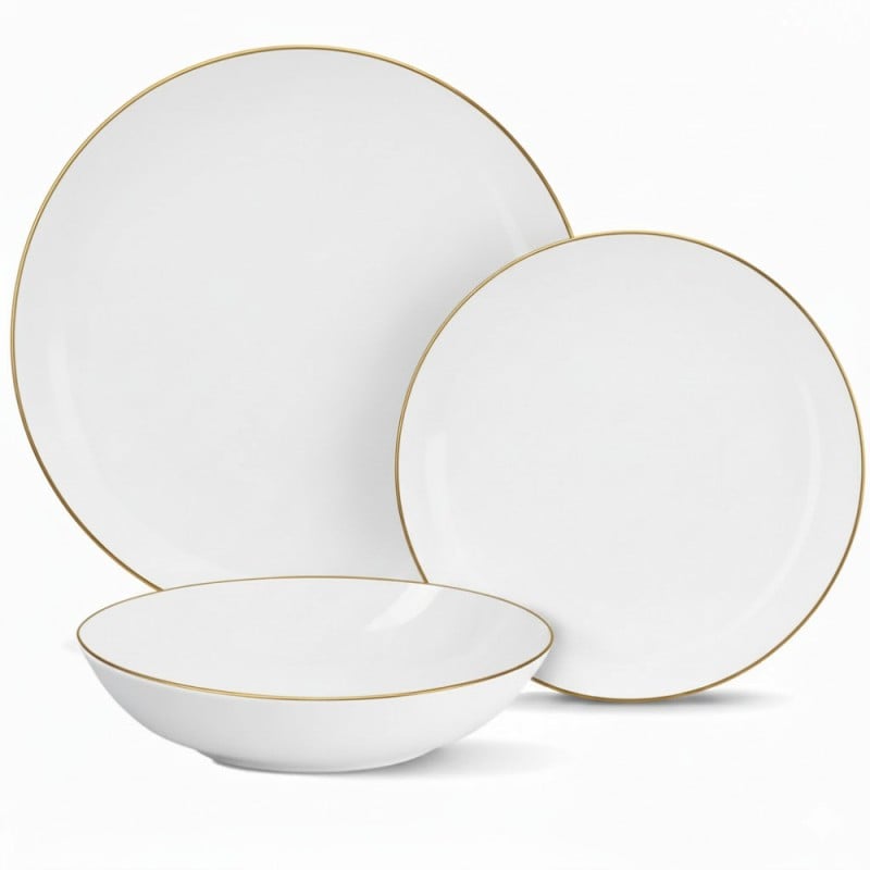 Serwis obiadowy GierekHoff Aurea 18 elementów - wzór białe ze złotym paskiem