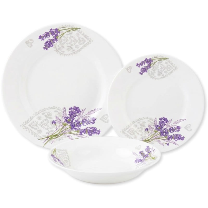 Zestaw obiadowy Esmene Levander 18 elementów – szkło opalowe, motyw lawendy