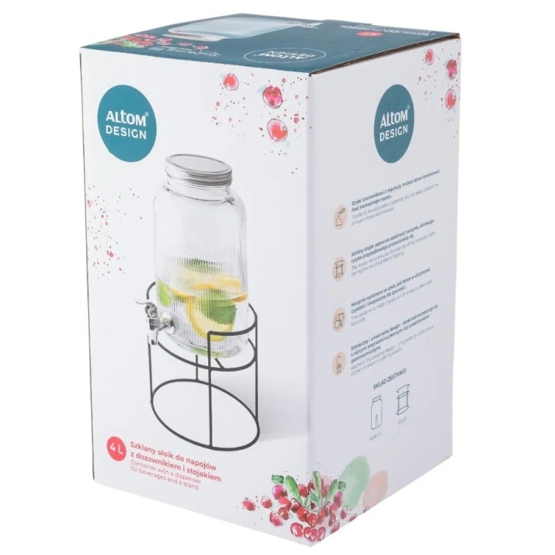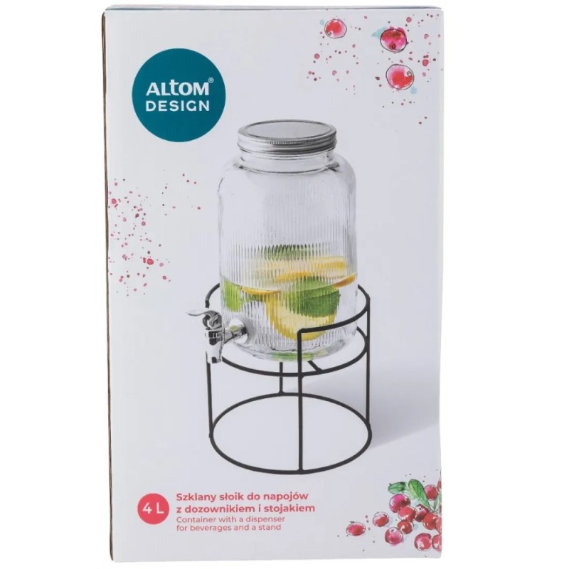 Słój szklany z kranikiem 4 L ze stojakiem do lemoniady napojów wody Altom Design