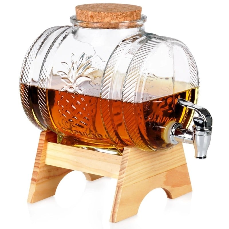 Beczka szklana słój z kranikiem 3 L ze stojakiem do whisky lemoniady napojów wody Vilde