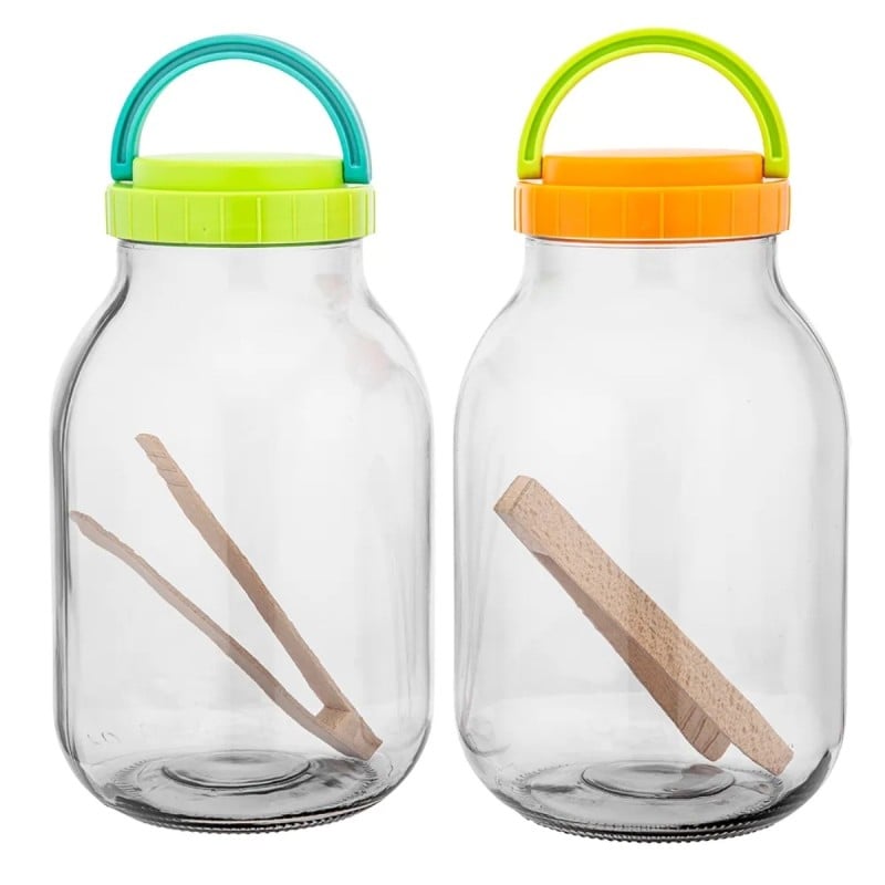 - Skład zestawu: 1 x słoik szklany 3 l, 1 x szczypce drewniane