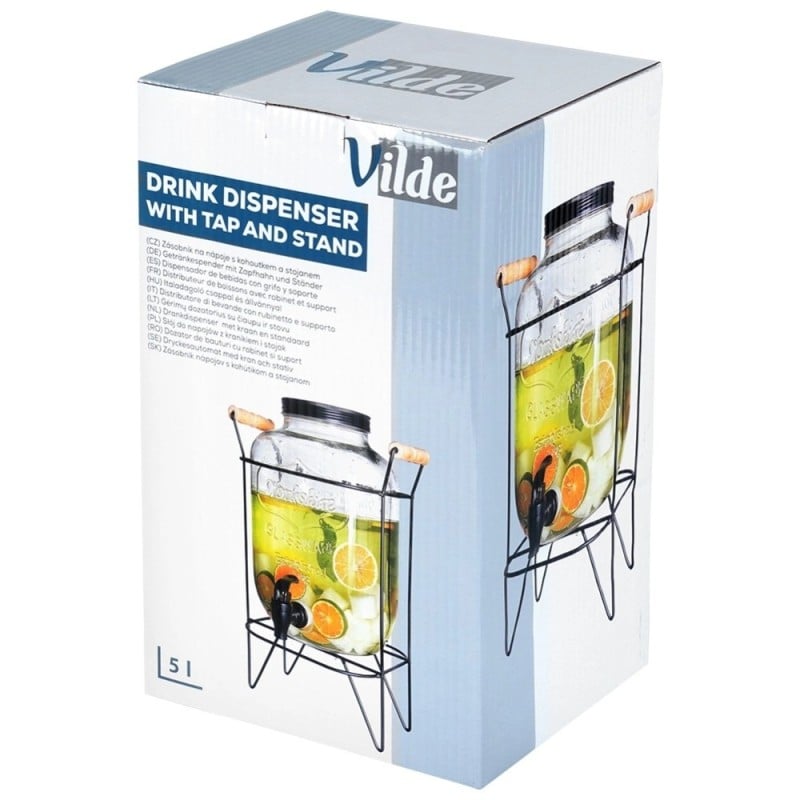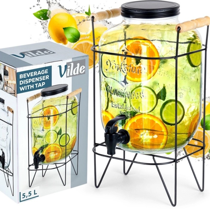 Słój szklany z kranikiem 5.5 L z czarnym stojakiem do lemoniady napojów wody Vilde