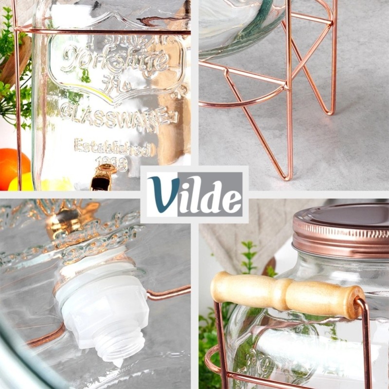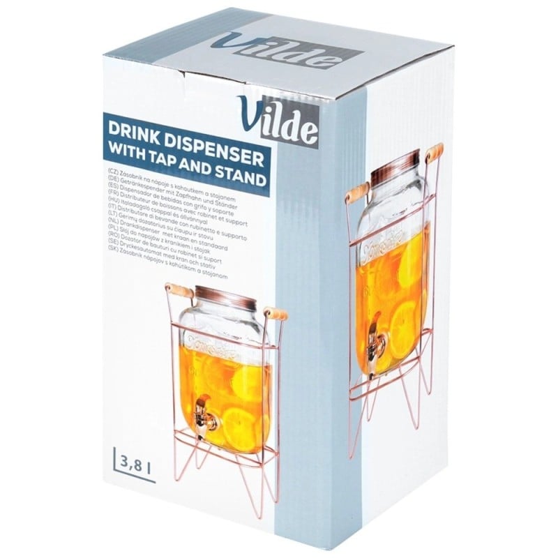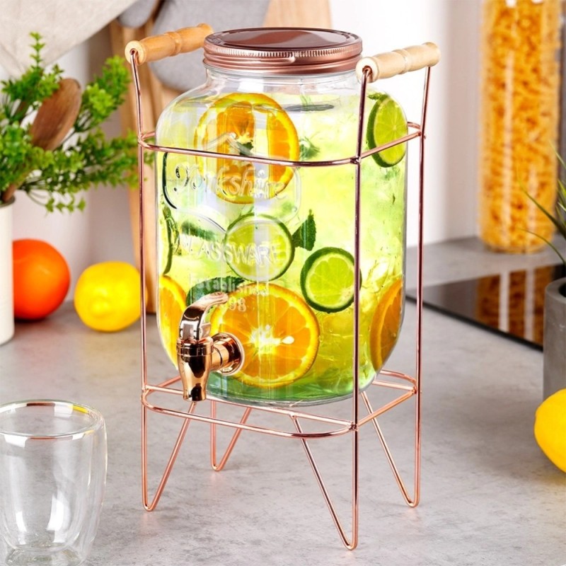 Słój szklany z kranikiem 4.2 L z złotym stojakiem do lemoniady napojów wody Vilde