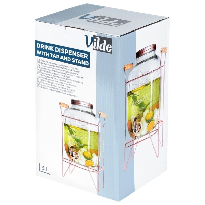 Słój szklany z kranikiem 5.5 L z złotym stojakiem do lemoniady napojów wody Vilde