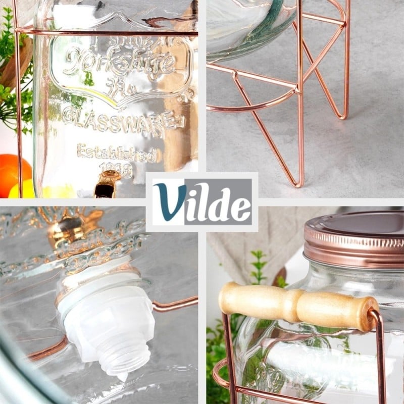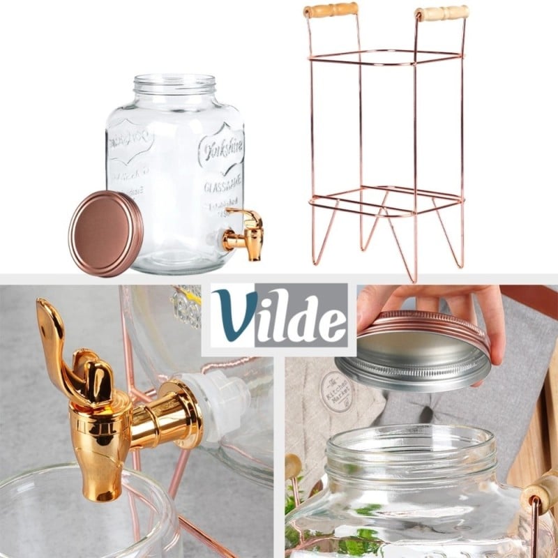 Słój szklany z kranikiem 4.2 L z złotym stojakiem do lemoniady napojów wody Vilde