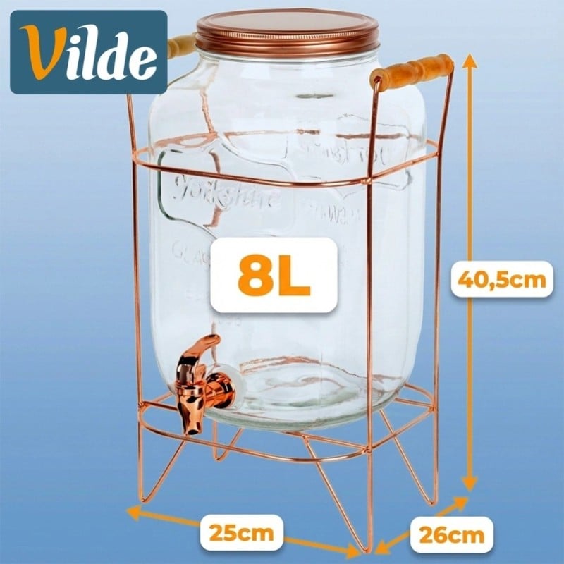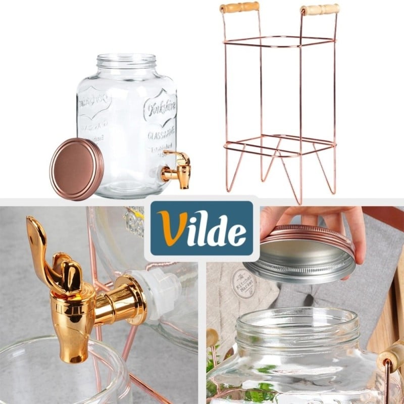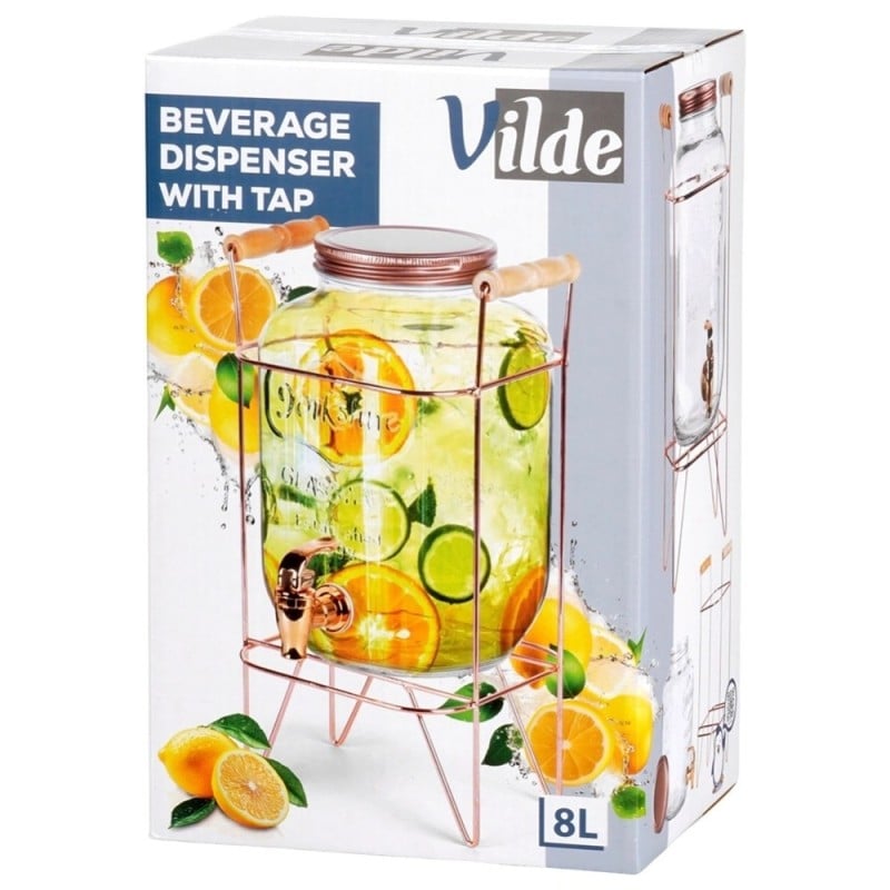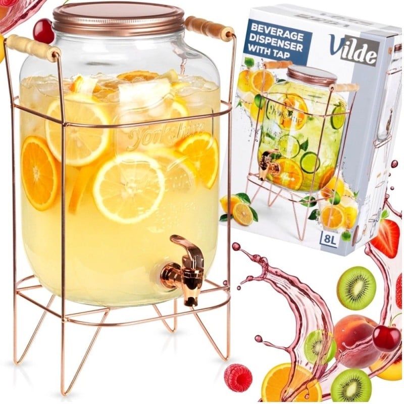 Słój szklany z kranikiem 8L z złotym stojakiem do lemoniady napojów wody Vilde