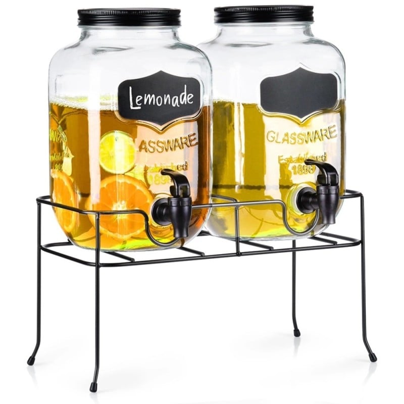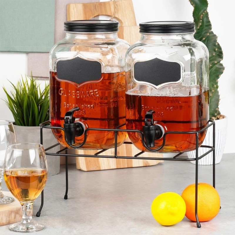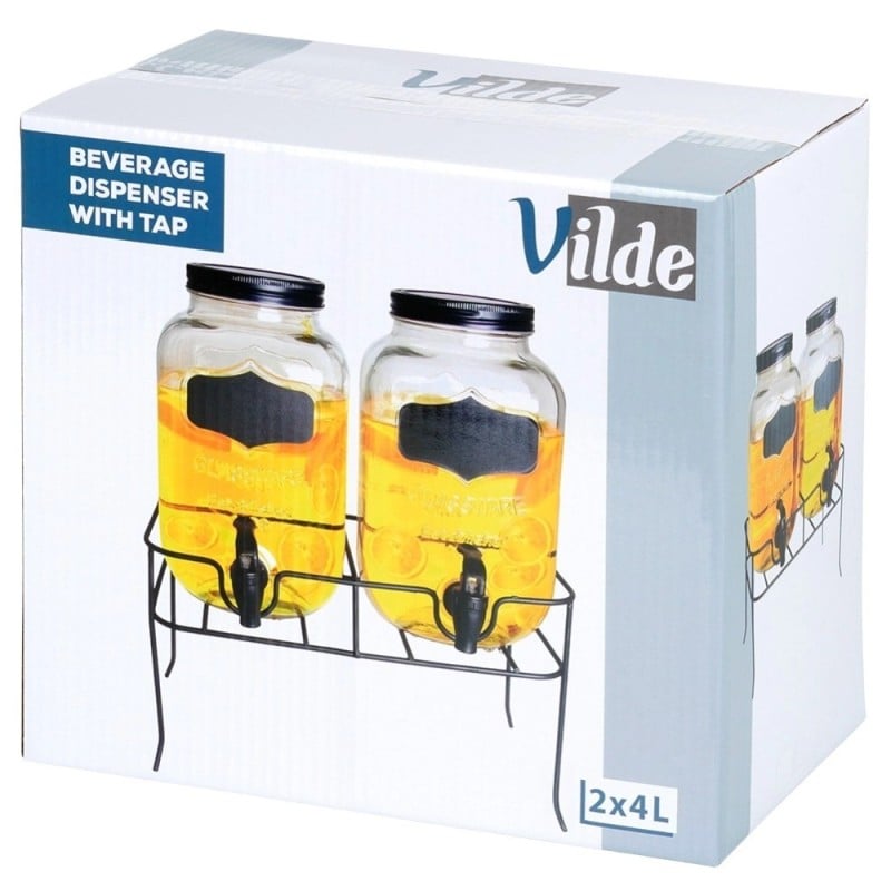 Słoje szklane z kranikiem 2x 4L z czarnym stojakiem do lemoniady napojów herbaty Vilde
