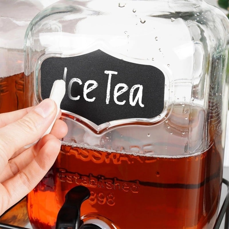 - Tabliczki do opisu - pozwalają oznaczyć zawartość każdego słoja kredą, co zwiększa wygodę podczas serwowania dwóch różnych napojów.