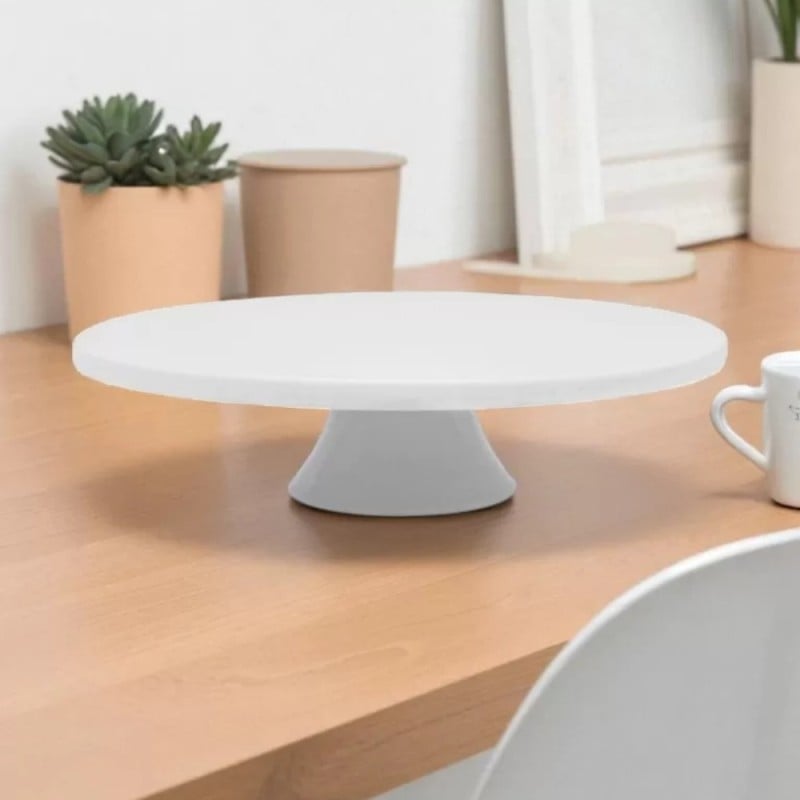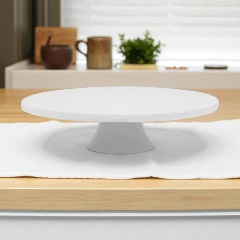 Patera porcelanowa 28 cm biała na ciasto i tort na nóżce Tragar