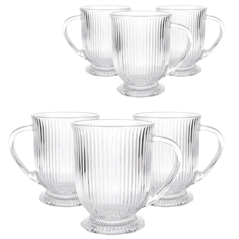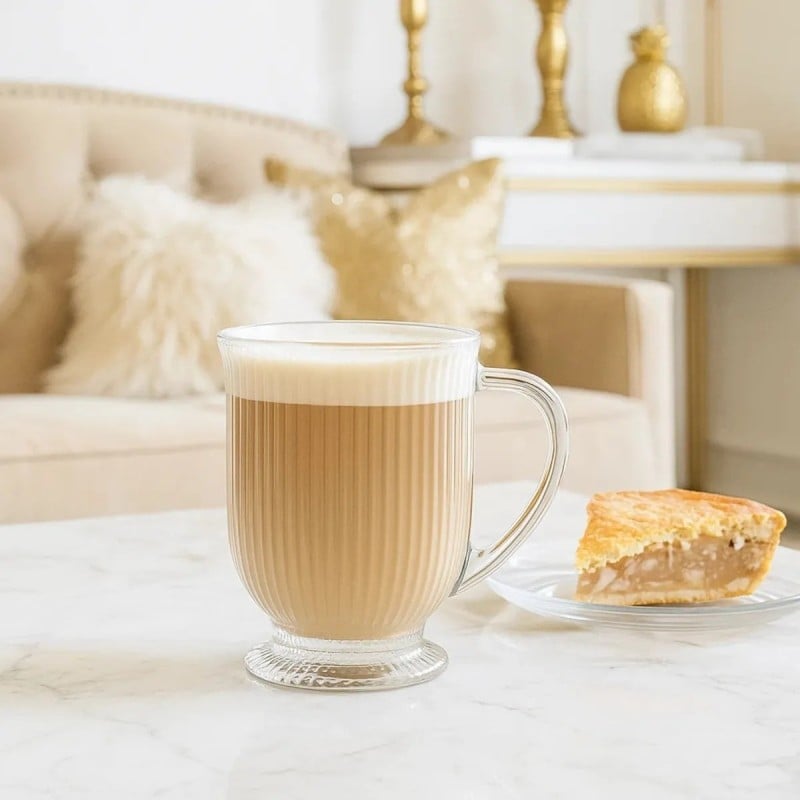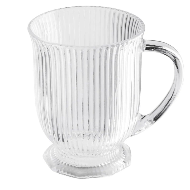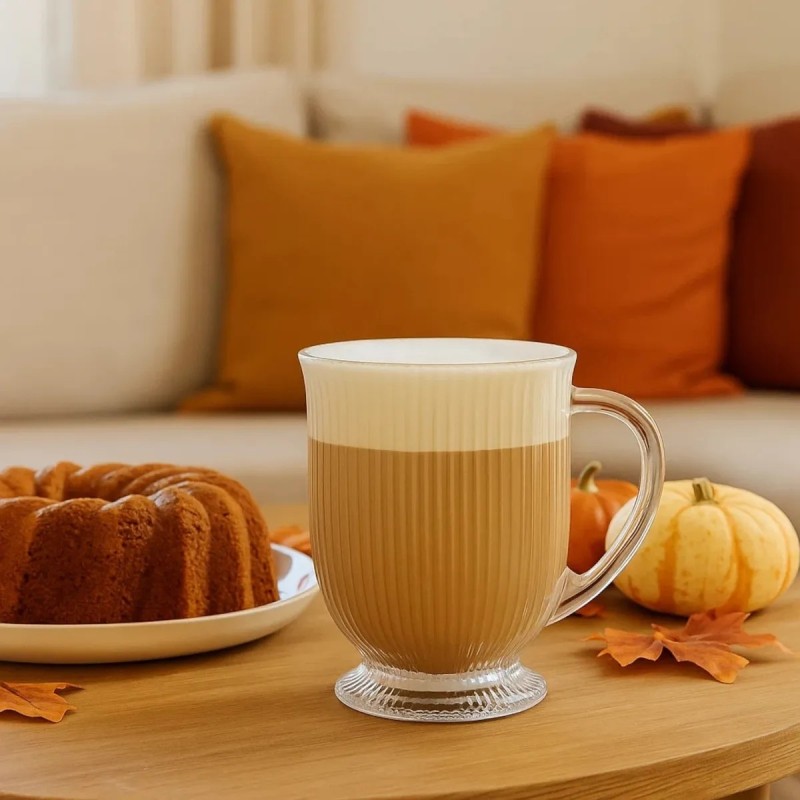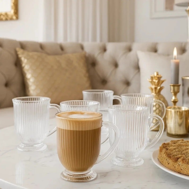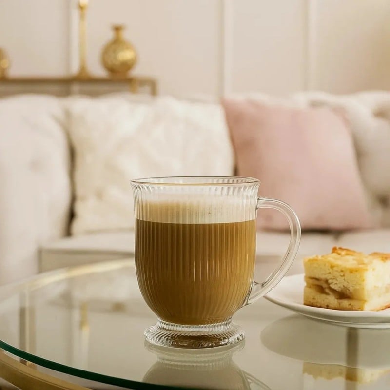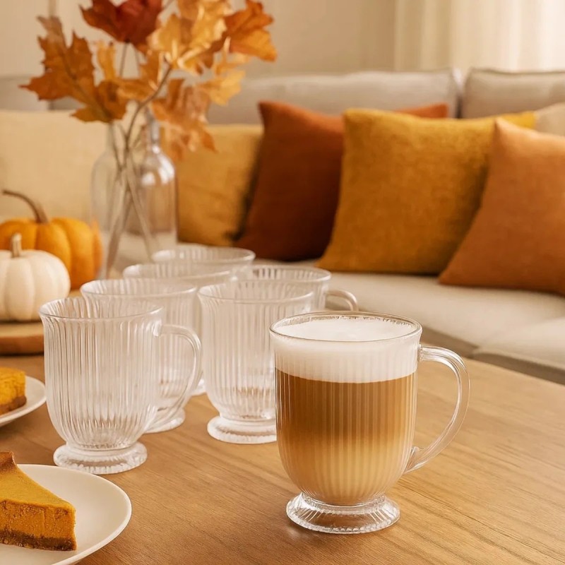 To szklanki, które robią klimat przy każdej kawie. Ryflowane szkło, smukła stopka i przezroczysta forma sprawiają, że latte, cappuccino czy herbata wyglądają w nich po prostu lepiej. Są lekkie wizualnie, ale solidne w użytkowaniu.