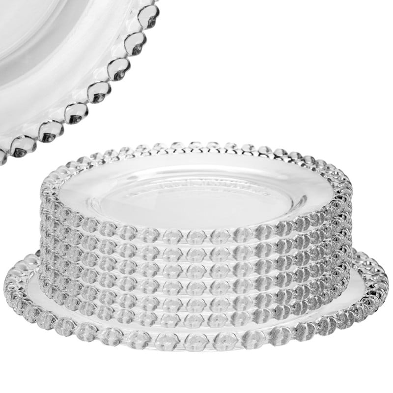 Zestaw szklanych talerzy – elegancja i funkcjonalność w jednym. Idealne do podawania deserów i przekąsek. Klasyczny kształt, łatwe w utrzymaniu czystości, a wypukłe dekoracje dodają im wyjątkowego charakteru. Sprawią, że każdy posiłek będzie wyjątkowy.