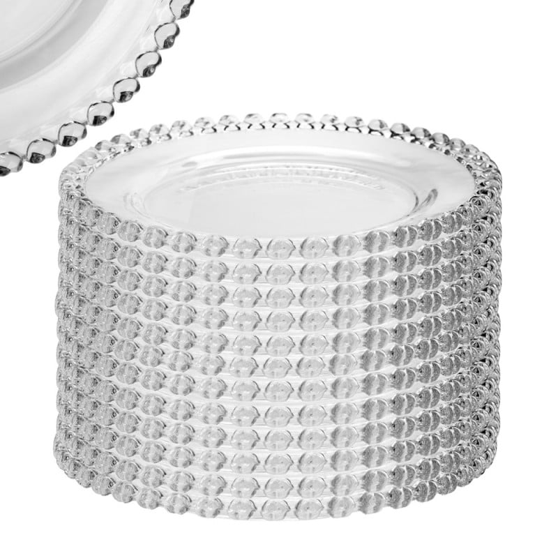 Zestaw szklanych talerzy – elegancja i funkcjonalność w jednym. Idealne do podawania deserów i przekąsek. Klasyczny kształt, łatwe w utrzymaniu czystości, a wypukłe dekoracje dodają im wyjątkowego charakteru. Sprawią, że każdy posiłek będzie wyjątkowy.