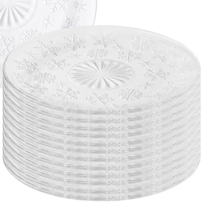 Talerzyki deserowe 17 cm szklane Altom Śnieżynki zestaw 12 sztuk spodek na ciasto deser