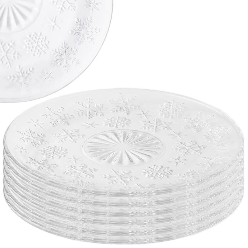 Talerzyki deserowe 17 cm szklane Altom Śnieżynki zestaw 6 sztuk spodek na ciasto deser