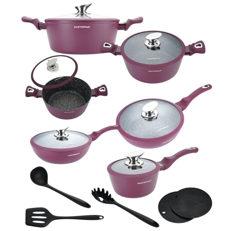 Ten zestaw został zaprojektowany z myślą o osobach, które chcą mieć w kuchni komplet solidnych naczyń do codziennego gotowania, bez kompromisów między wyglądem a funkcjonalnością. Kute aluminium, marmurowe wykończenie w głębokim burgundowym odcieniu i przemyślana konstrukcja sprawiają, że to zestaw, który dobrze wygląda i jeszcze lepiej pracuje na każdym typie kuchenki.